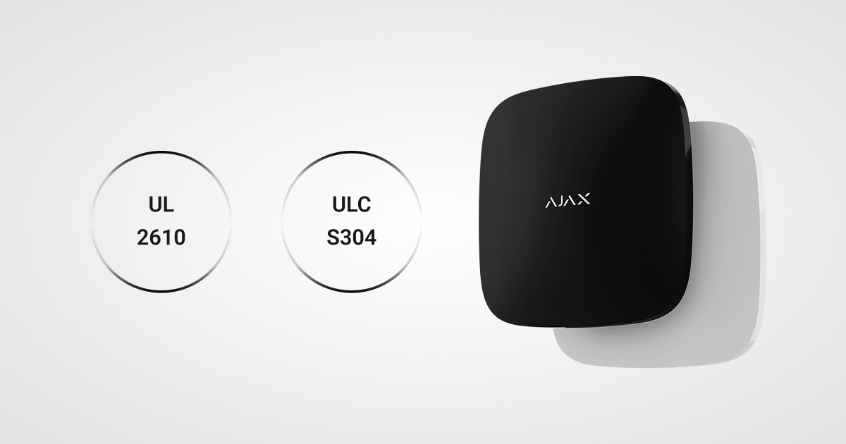 À ce jour, les centrales Ajax disponibles en Amérique du Nord – Hub 2 (4G) Jeweller et Hub 2 Plus Jeweller – respectent officiellement les normes UL 2610 et ULC S304. Les détails de conformité sont disponibles dans le répertoire officiel UL Prospector.