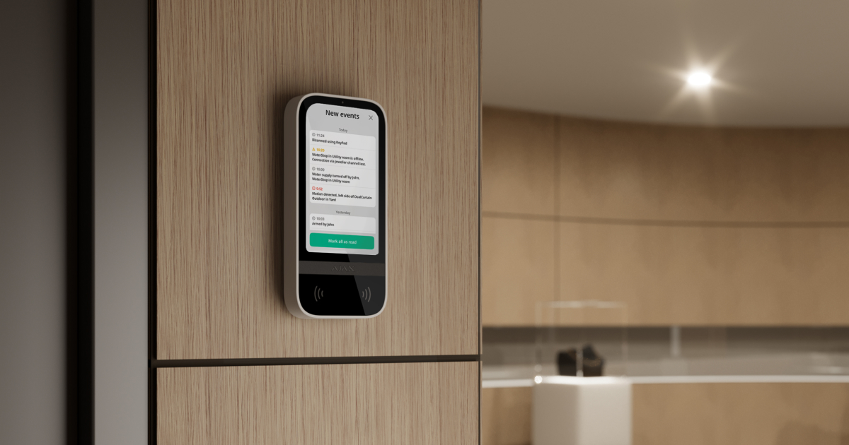 Superior KeyPad TouchScreen Fibra przechowuje i wyświetla do 100 ostatnich zdarzeń systemowych. Niezależnie od tego, czy chodzi o włamanie, alarm pożarowy, awarię czy otwarte drzwi — użytkownicy mogą od razu zobaczyć, co się stało. Odpowiedź jest na wyciągnięcie ręki, wystarczy jedno naciśnięcie. I w przeciwieństwie do tradycyjnych klawiatur, które wskazują jedynie niejasny komunikat „Strefa 1”, Ajax natychmiast dostarcza pełny kontekst zdarzenia — wraz z nazwami urządzeń, lokalizacjami i znacznikami czasowymi. Teraz gdy alarm zostanie uruchomiony, klawiatura wskazuje dokładnie, który czujnik został wyzwolony, co pomaga użytkownikom w szybkim wykryciu potencjalnego niebezpieczeństwa. Żadnego zgadywania, tylko pełna transparentność.