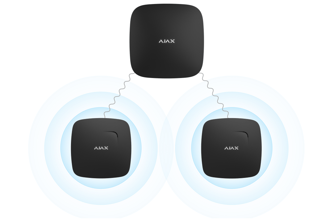 Todos os detetores de incêndio no sistema ligam as sirenes integradas no caso de, pelo menos, um dos detetores registar um alarme. Um alarme de detetores de incêndio interligados é ativado dentro de um intervalo de consulta "hub-detetor".
