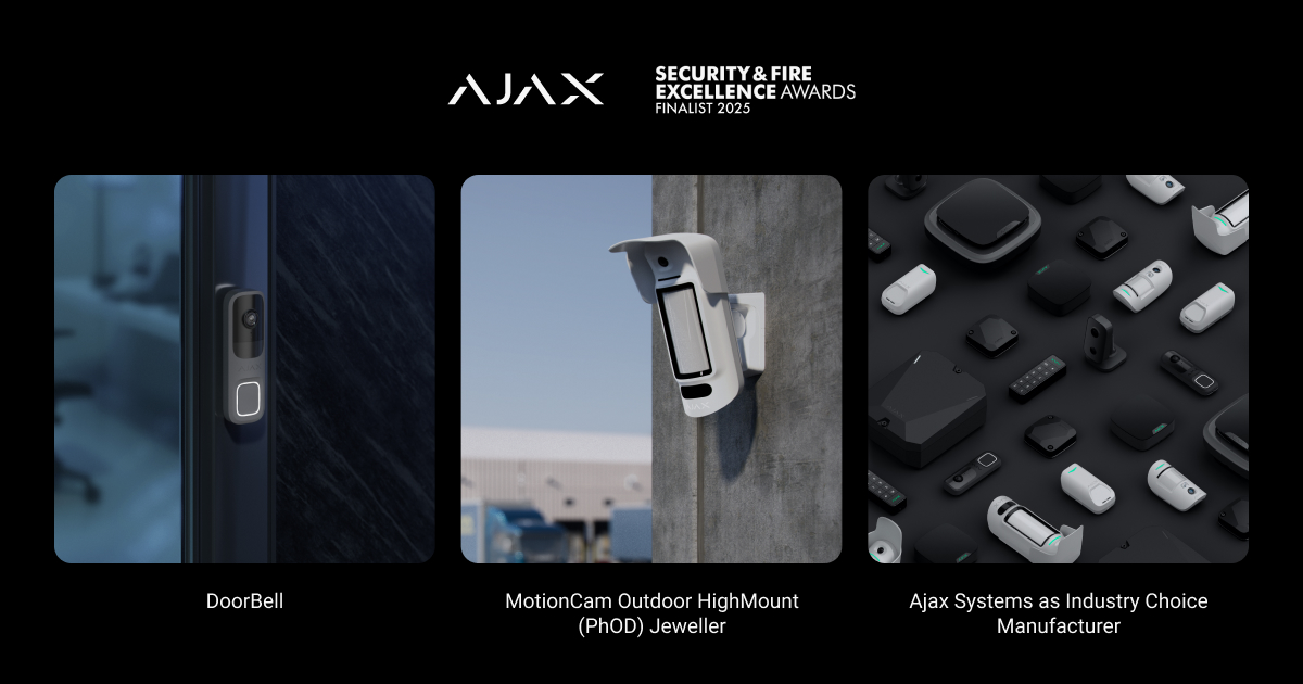 Ajax Systems, международная технологическая компания и крупнейший в Европе производитель охранных систем, вошла в шортлист премии Security & Fire Awards for Excellence 2025 — одной из самых престижных наград в сфере безопасности в Великобритании.